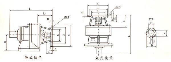 | 尺寸系列 機型號 | 電動機 功率KW | 電動機 機座號 | L | L1 | H | B | f | d1(公差) | d2 | d3 | d(公差) | D | h | b | nxd | |||